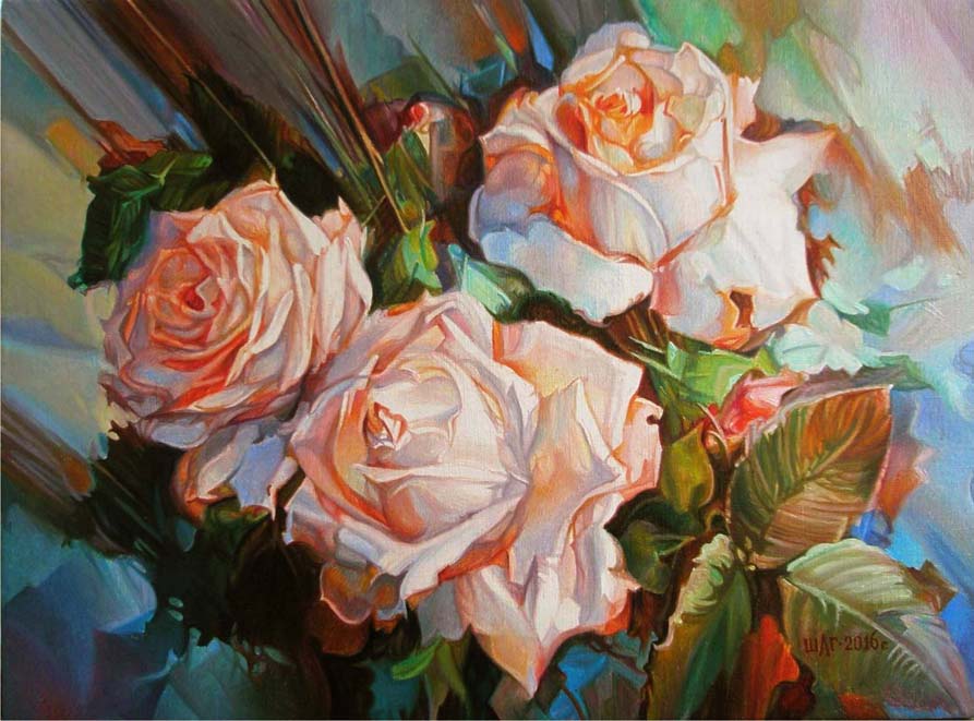 ,,ЧАЙНЫЕ РОЗЫ". ХОЛСТ, МАСЛО.