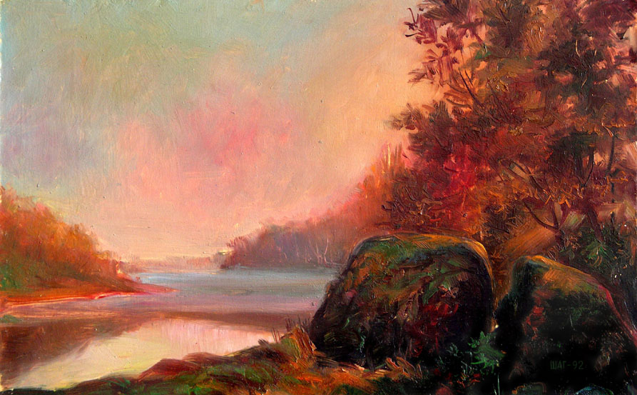 РЕКА УЖ. КАРТОН, МАСЛО.